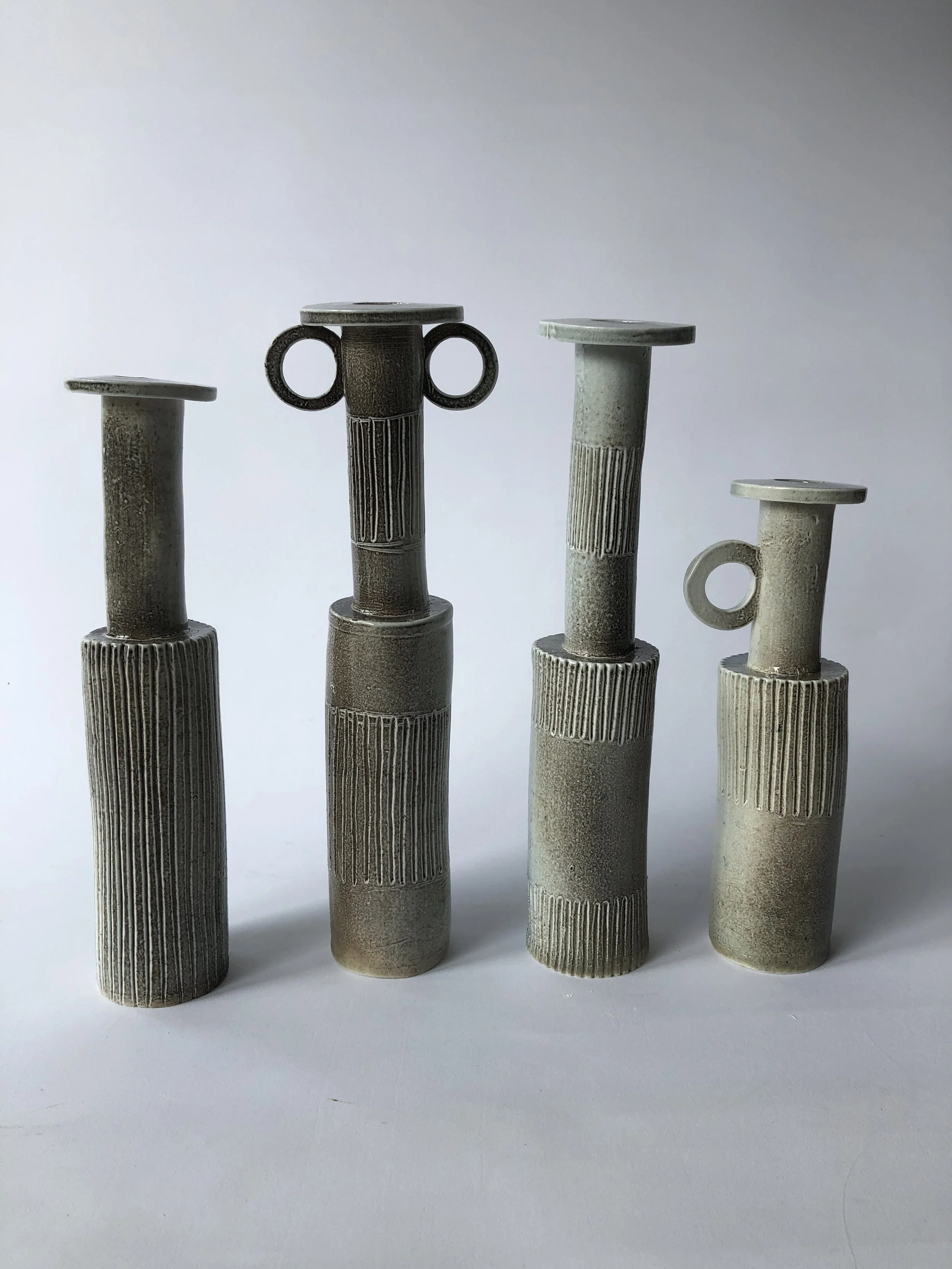 Prints Salt glazed porcelain Soda-glaze Earthstone clay with oxide inlay Glazed porcelain with oxide decoration Wood fired Electric fired